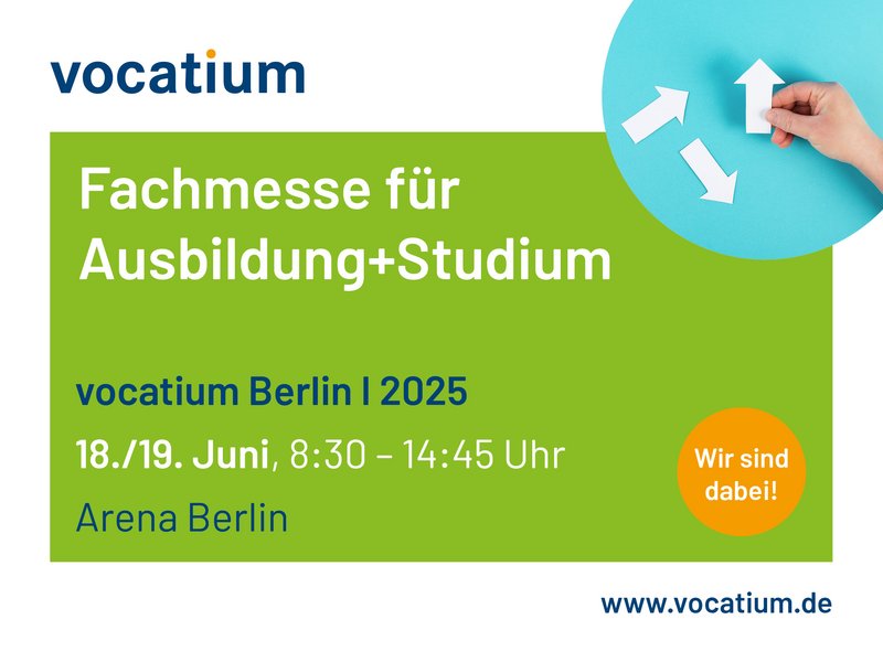 Am 18. und 19. Juni sind wir auf der Vocatium in der Arena am Start – und du solltest es auch sein. Unser Team freut sich darauf, all deine Fragen rund um schulische Ausbildungen zu beantworten.