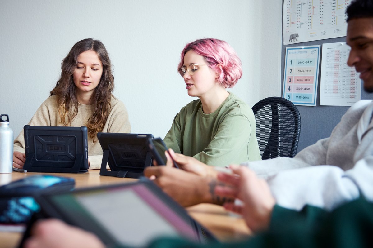 In deinen Pausen kannst du die Schülerküche nutzen oder dich in der Cafeteria mit Mitschülerinnen und Mitschülern austauschen und dir Snacks oder Getränke holen.